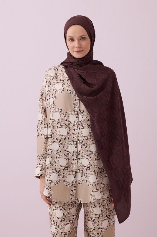 Dama Desen Kahverengi Naia Pamuk Şal 70x200