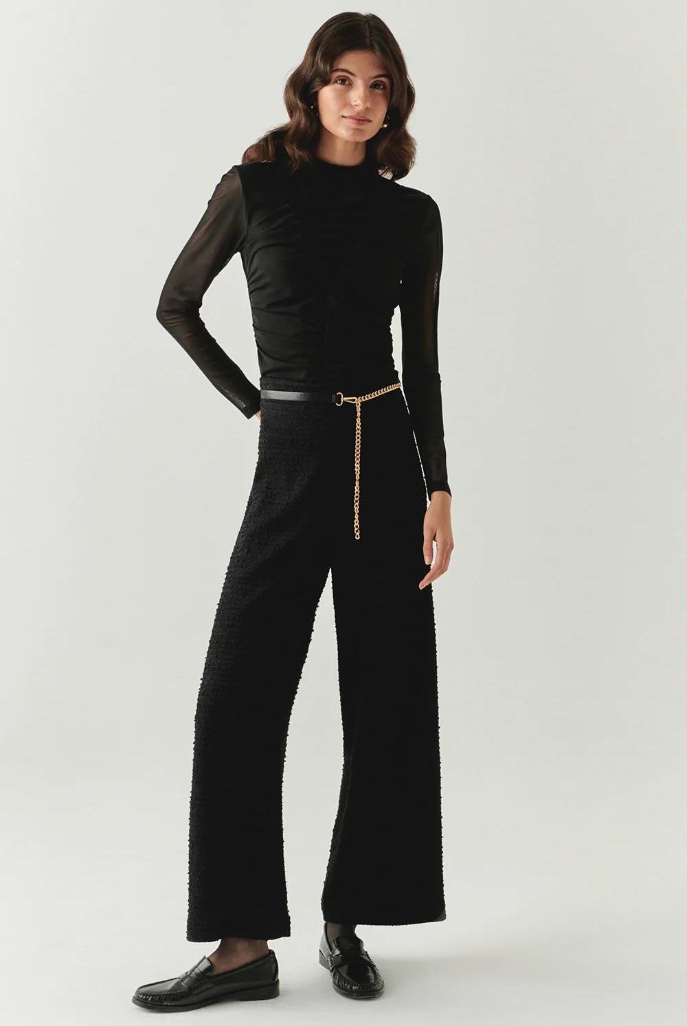 Zincir Kemerli Regular Dokuma Siyah Pantolon