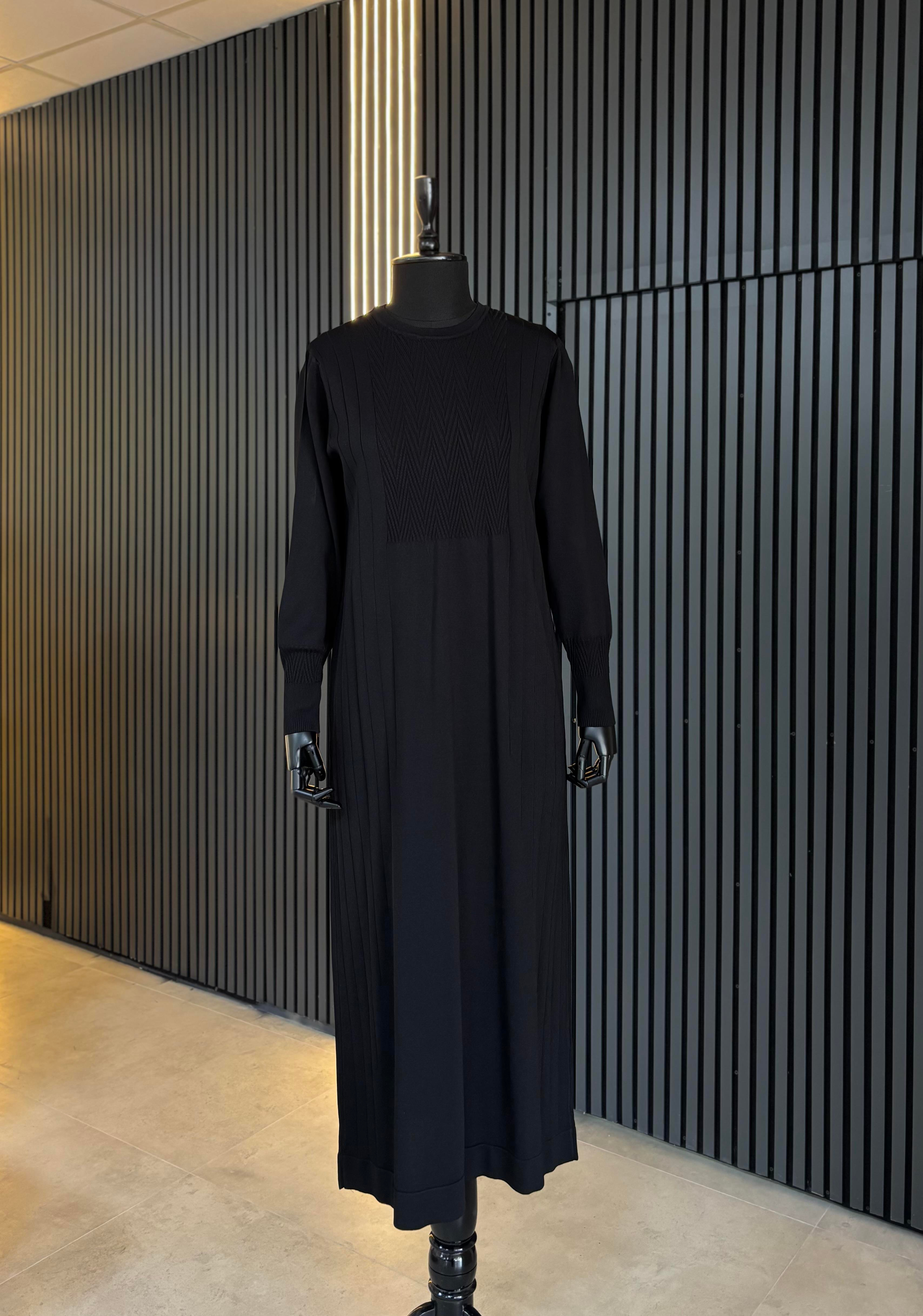 Desenli Merserize Elbise-Siyah