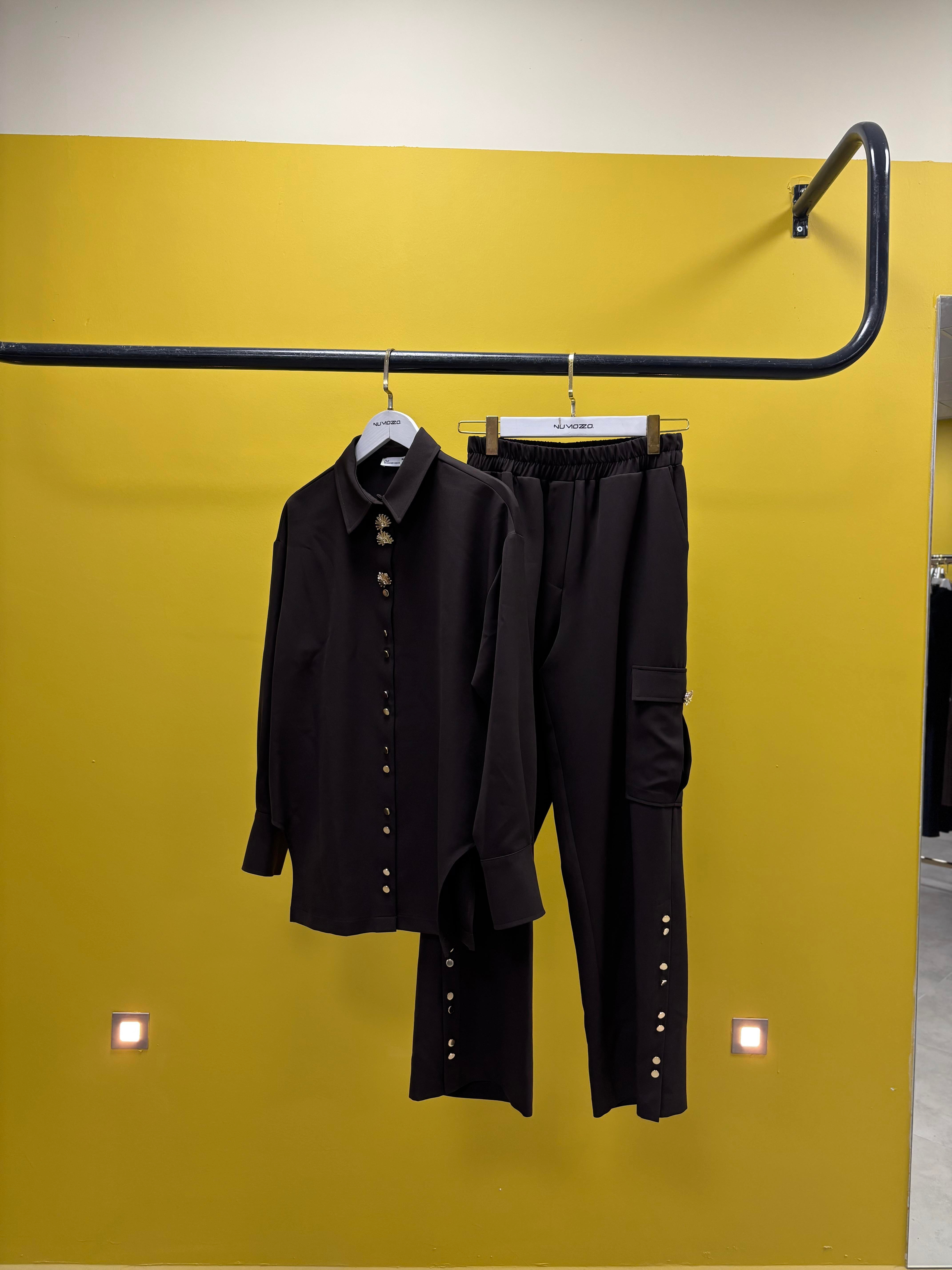 SOLENNE DÜĞME DETAY TAKIM-KAHVERENGİ